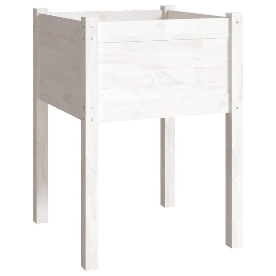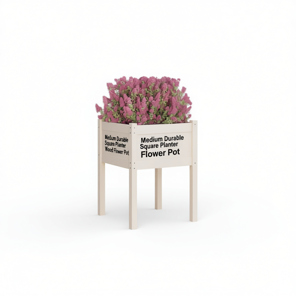 Fioriera Quadrata Media in Legno di Pino Massiccio, Vaso per Fiori da Giardino, Durevole ed Elegante, Bianco