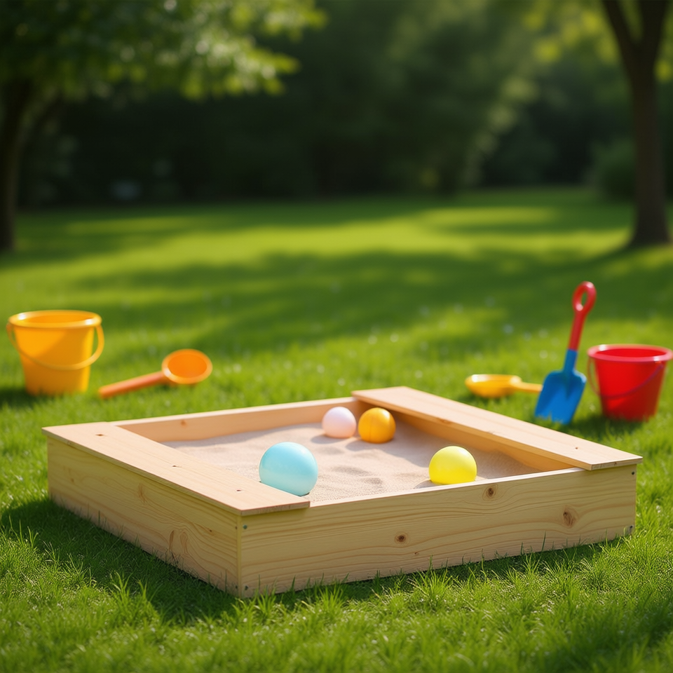 Square Sandpit Natural Solid Pine Wood Playpen For Kids Durable Rustic Design Medium Size