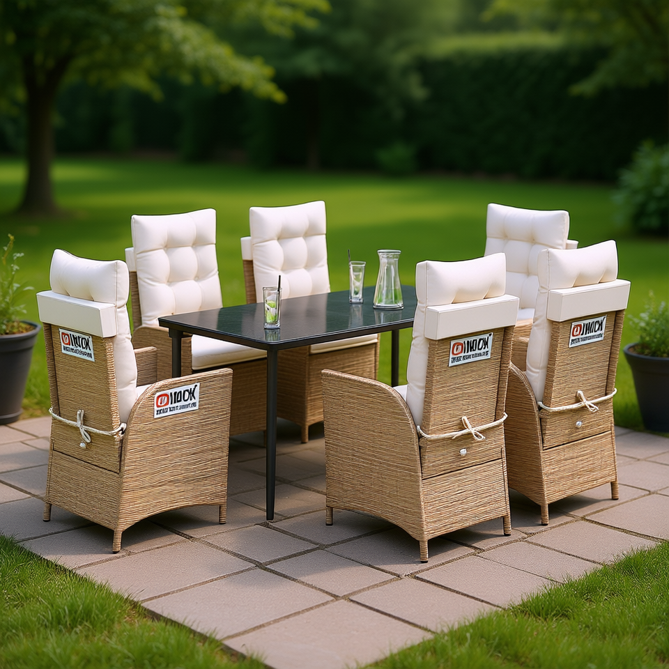 Set da Pranzo da Giardino 6 Posti in Rattan PE Beige e Nero, Arredamento Contemporaneo per Esterni