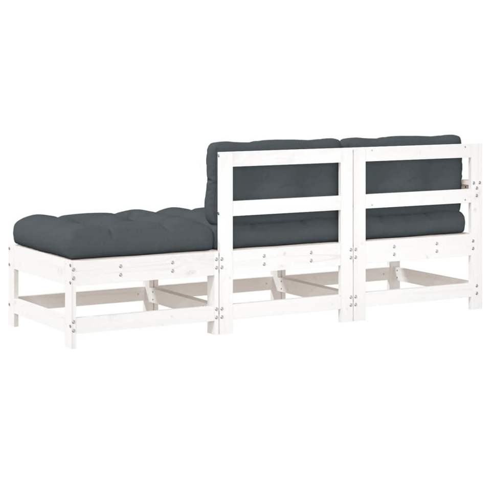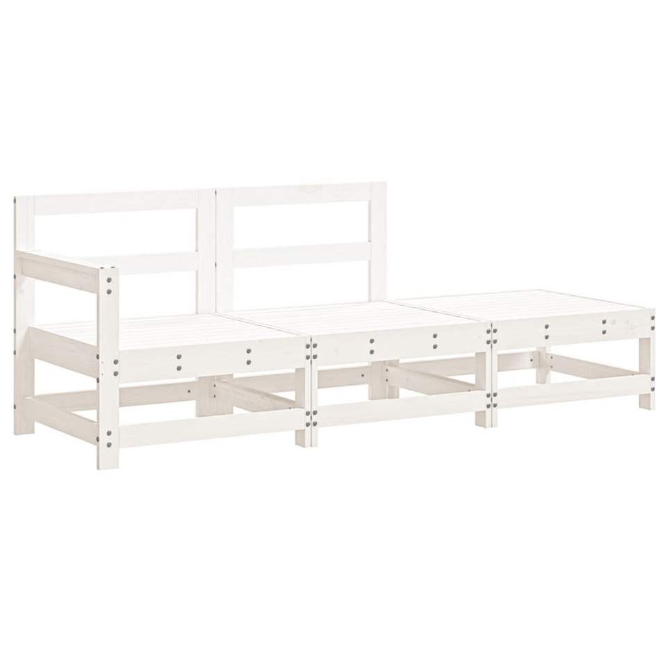 Set Lounge da Giardino Bianco in Legno di Pino Massiccio con Tessuto Oxford, Divano a 3 Posti per Esterni, Design Contemporaneo Resistente alle Intemperie