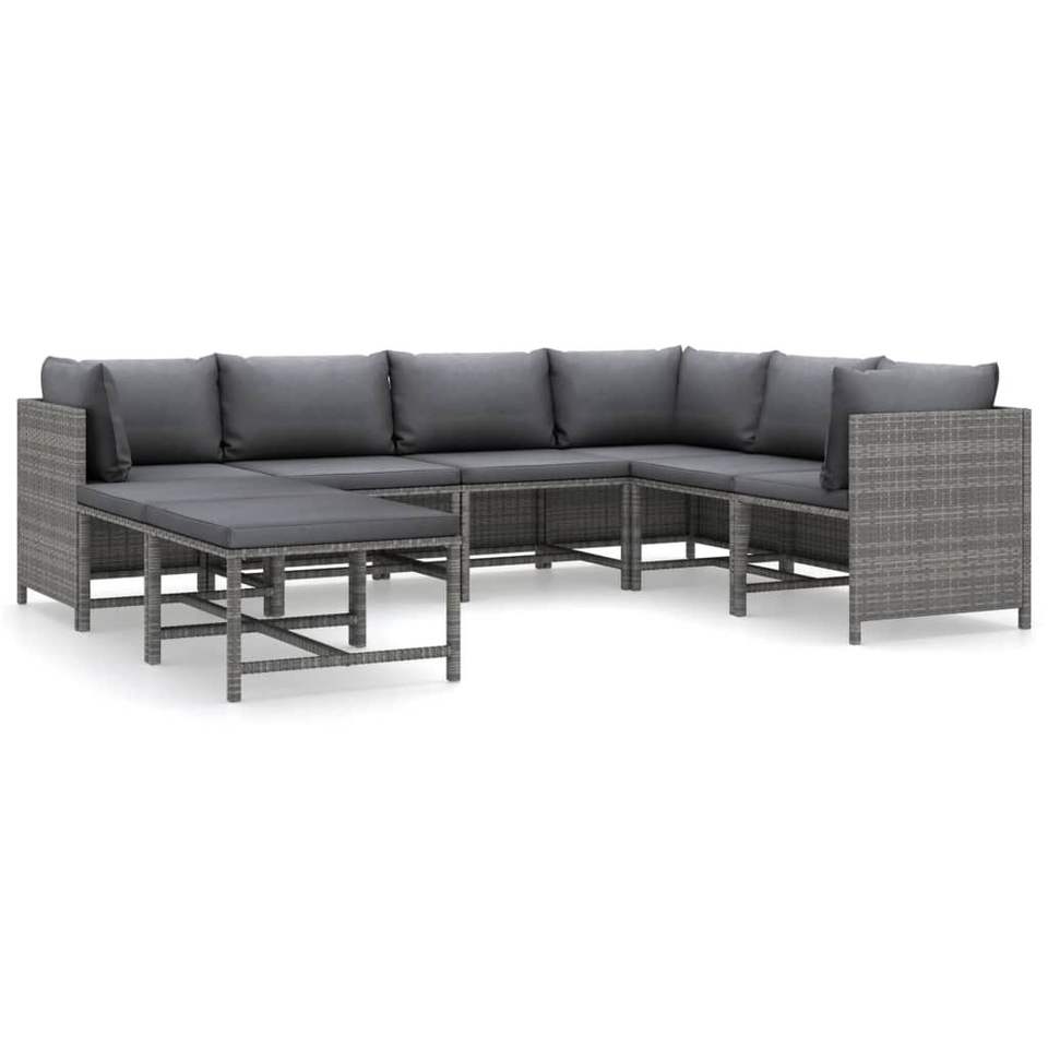 Set Lounge da Giardino di Medie Dimensioni con Rattan PE Grigio e Mobili da Esterno in Acciaio Verniciato a Polvere