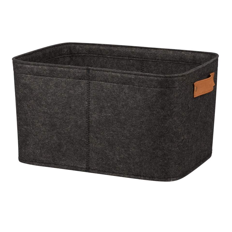 Cesto Decorativo in Feltro Grigio Medio 38x28x20 cm - Collezione Contenitori e Cesti in Tessuto