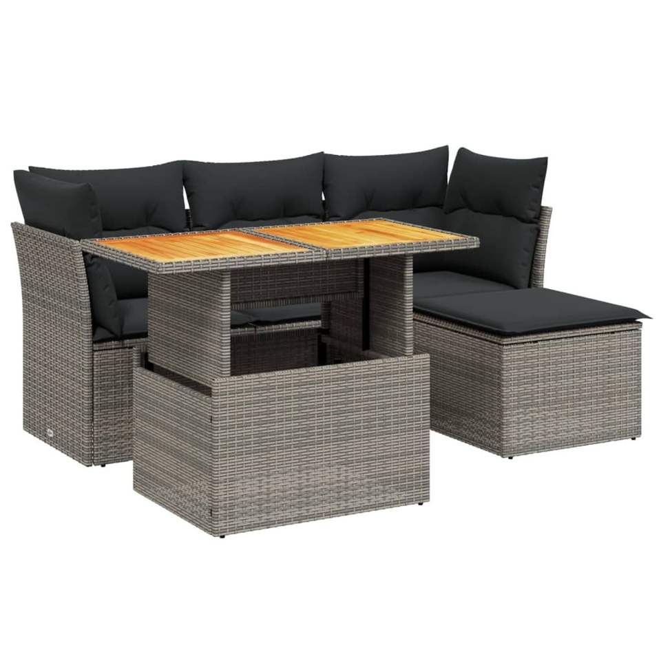 Medium Gray PE Rattan Garden Sofa Set with Removable Covers Patio Furniture