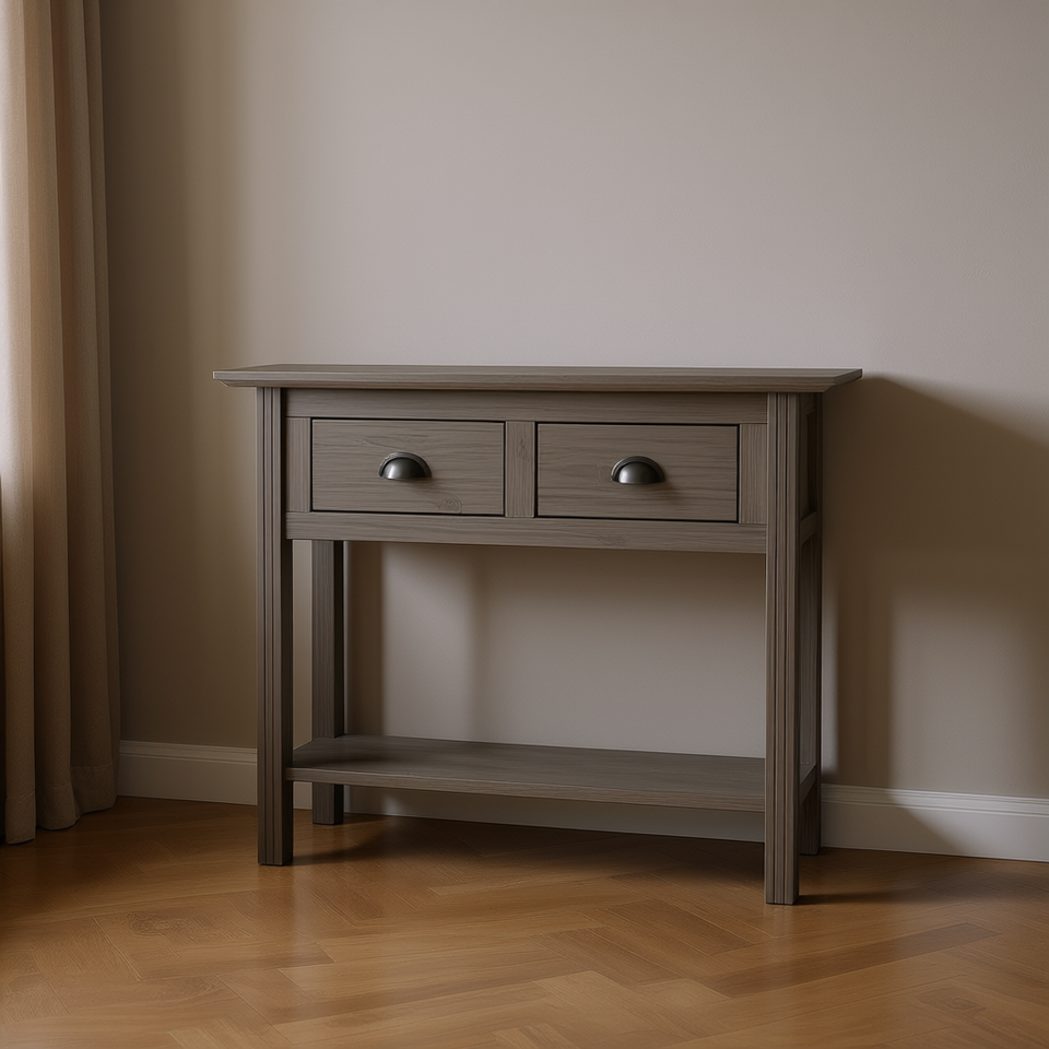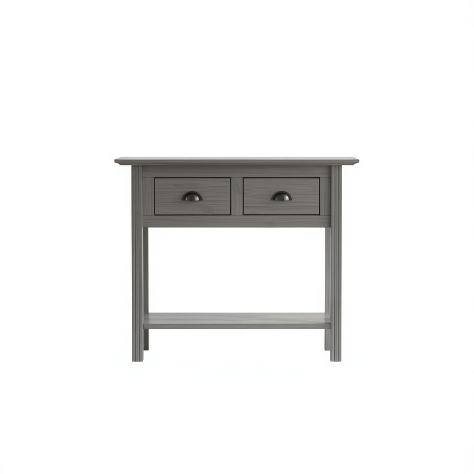 Medium Grey Solid Pine Wood Console Table With Storage Drawers Modern Living Room Furniture