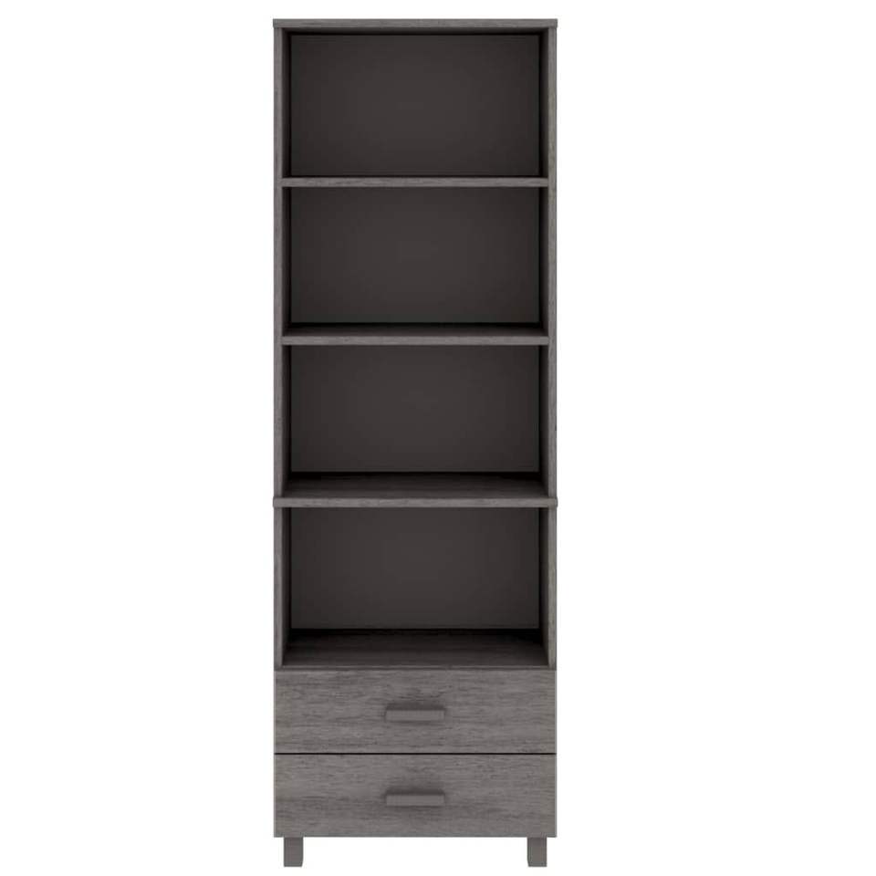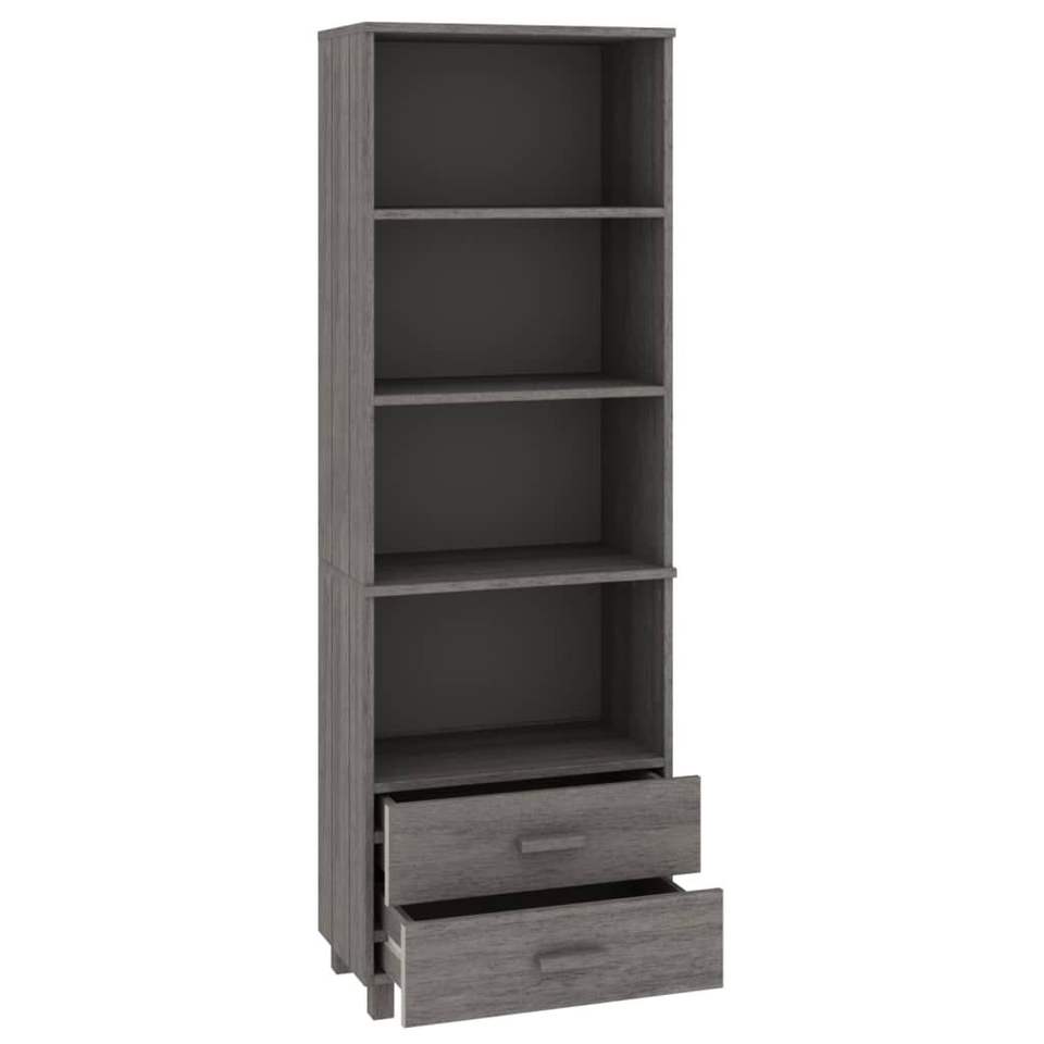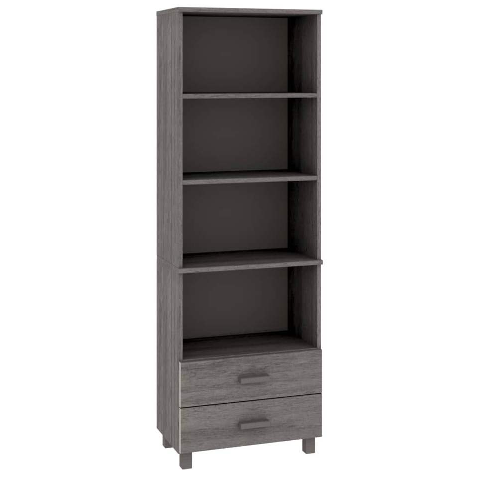 Mobile Alto Grigio in Legno di Pino Massiccio con 4 Ripiani e 2 Cassetti, Mobile Moderno per Soggiorno
