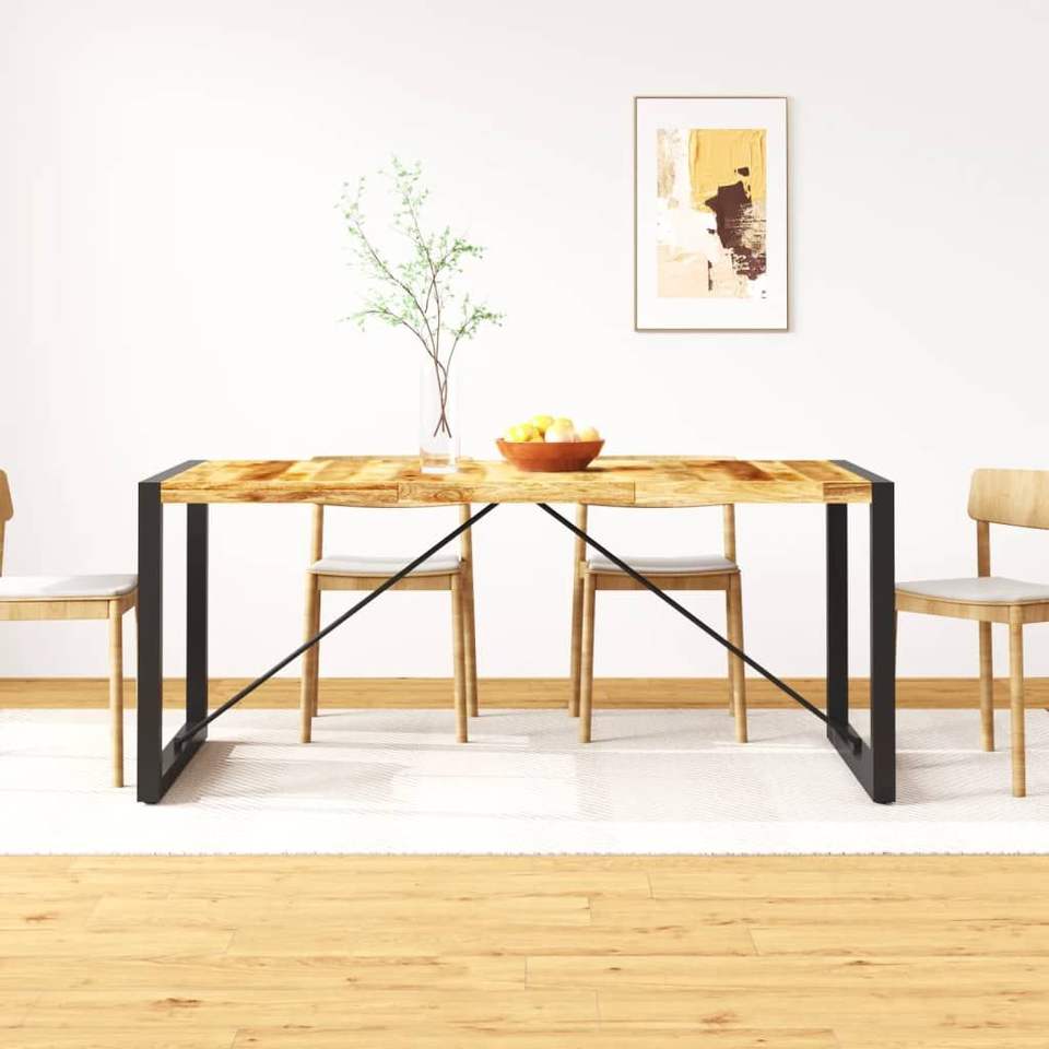 Tavolo da Pranzo Industriale Medio in Legno di Mango Grezzo Marrone e Nero