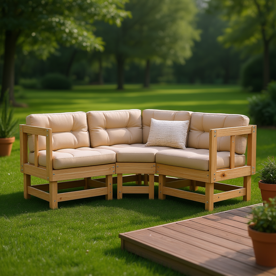 Set di Divani Angolari da Giardino in Legno di Pino Naturale, Arredamento da Esterno in Stile Scandinavo