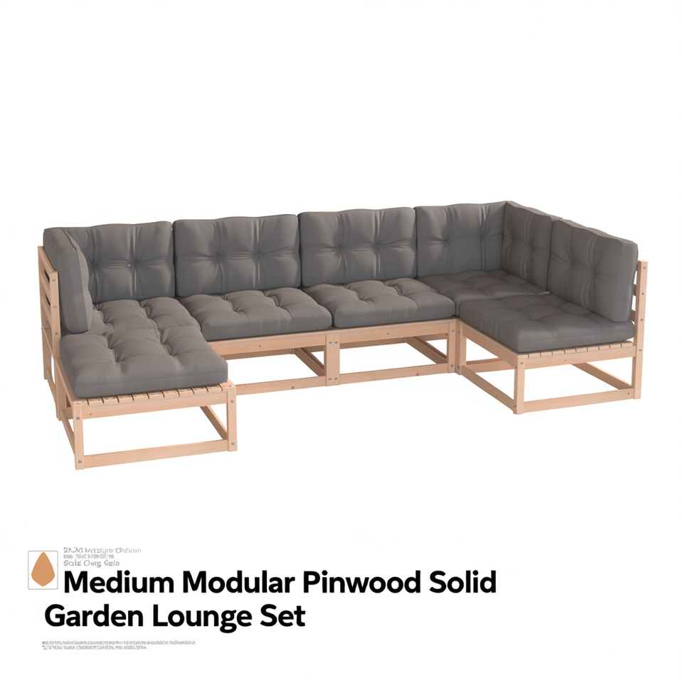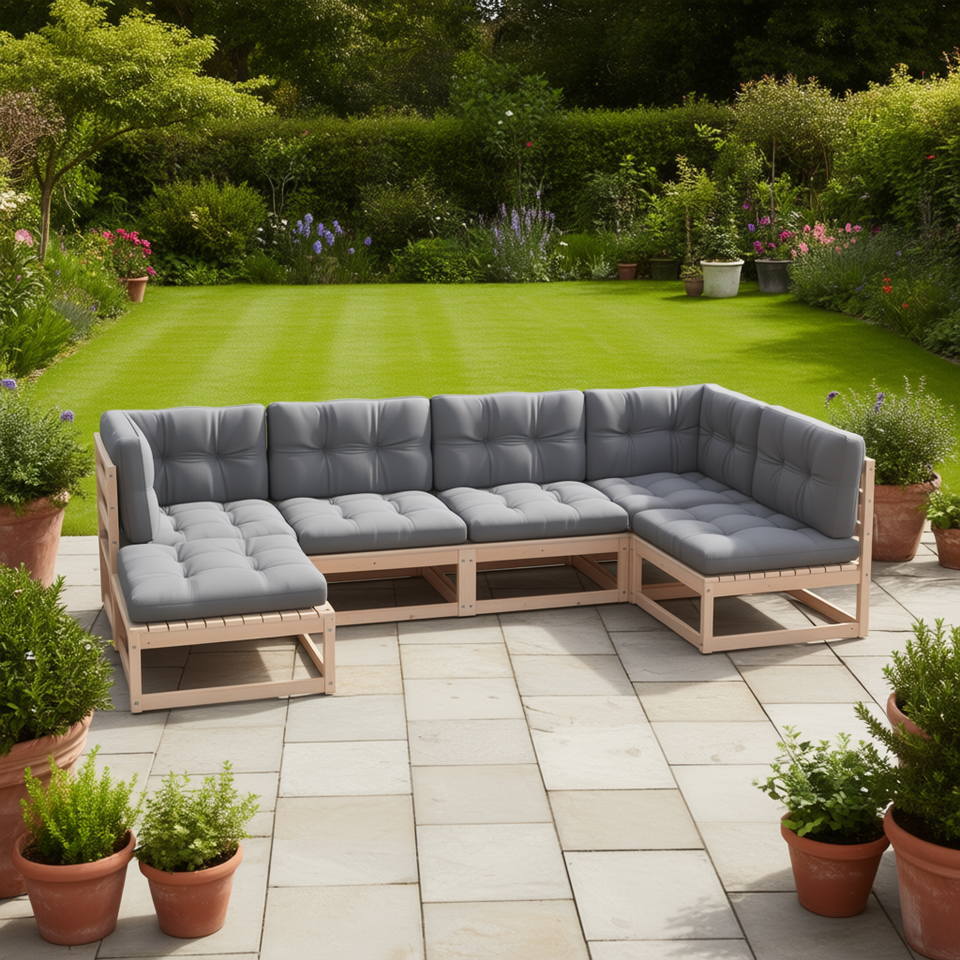 Set Lounge da Giardino Modulare in Legno di Pino Massiccio, Arredamento da Esterno per 6 Persone, Design Contemporaneo