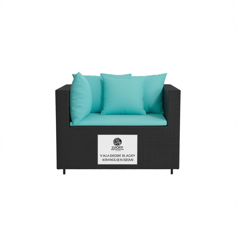 Divano da giardino Valagarden in rattan PE nero e blu acqua, una poltrona, mobili da esterno con cuscino impermeabile