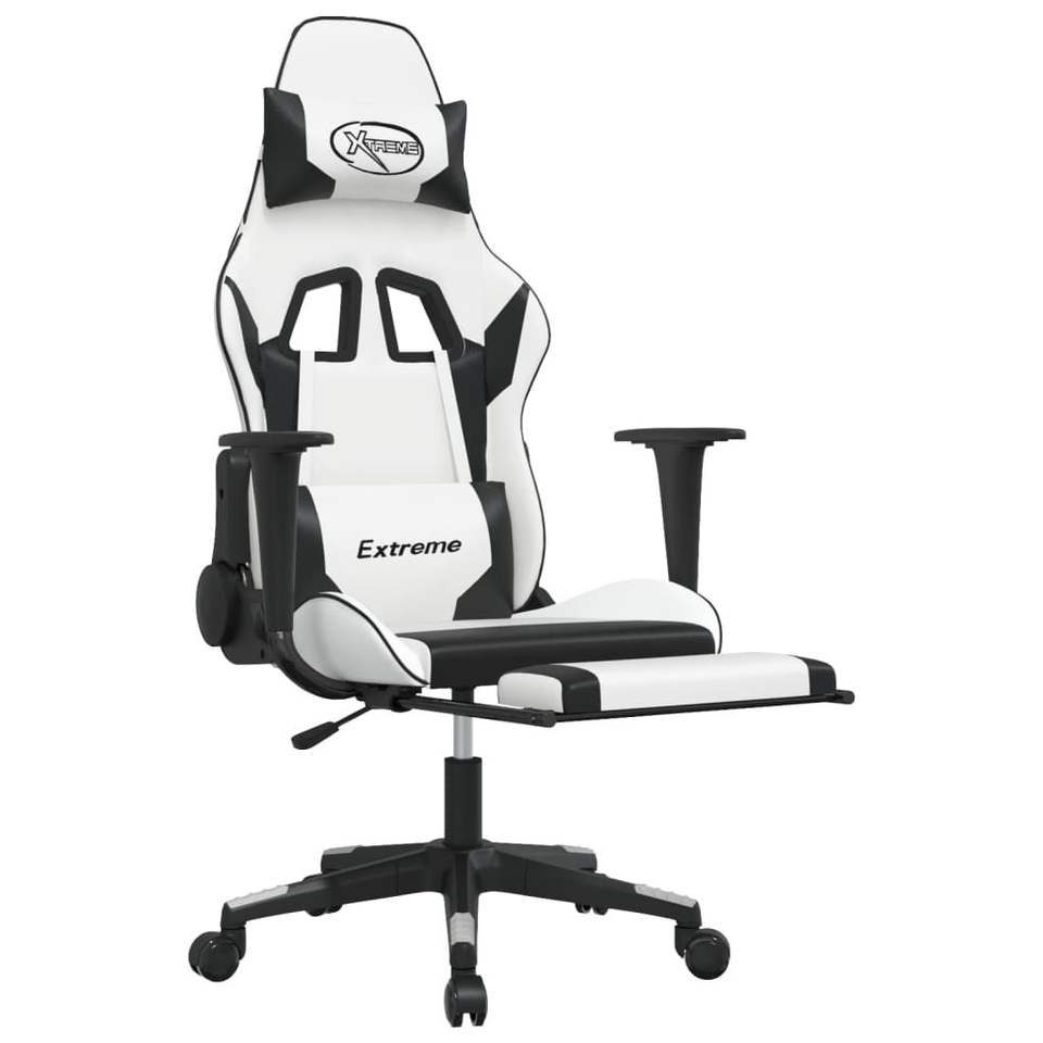 Extreme Gaming Chair White Faux Leather Steel Base 5 Star Caster Swivel Office Chair