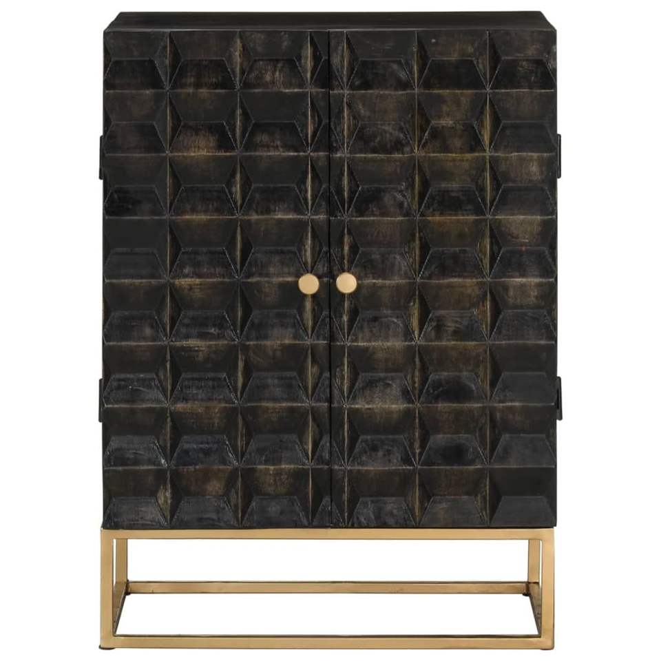 Credenza Media in Legno Massello di Mango Nero e Ferro