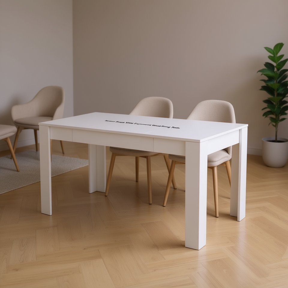 Tavolo da Pranzo Rettangolare Semplice in Legno Ingegnerizzato Bianco, Arredamento Moderno e Stabile per la Casa