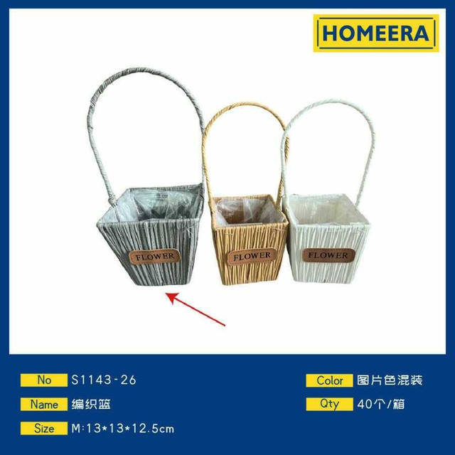 Medium Size 13x13x125cm Plastic and Wire Flower Baskets in Assorted Colors