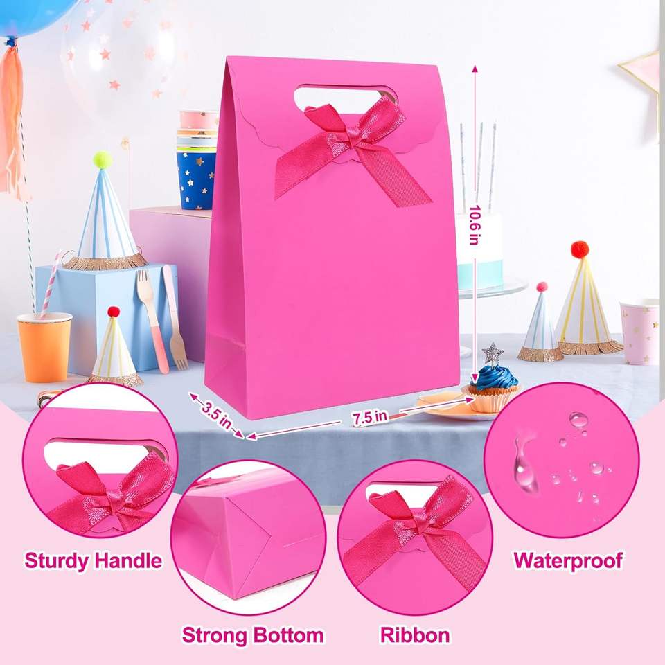 Set di 4 Sacchetti Regalo di Media Dimensione 7 X 4 X 10 Pollici con Manici per Feste, Compleanni, Matrimoni e Altre Occasioni