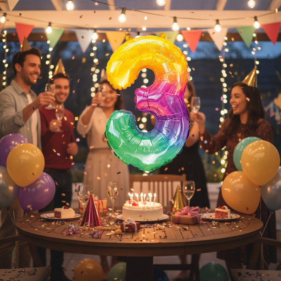 Set di Palloncini Numero 3 in Mylar Colorato, Misura Media 86cm, per Feste e Celebrazioni di Capodanno