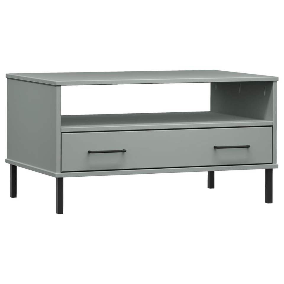 Tavolino da caffè medio in legno massello di pino grigio con spazio contenitivo