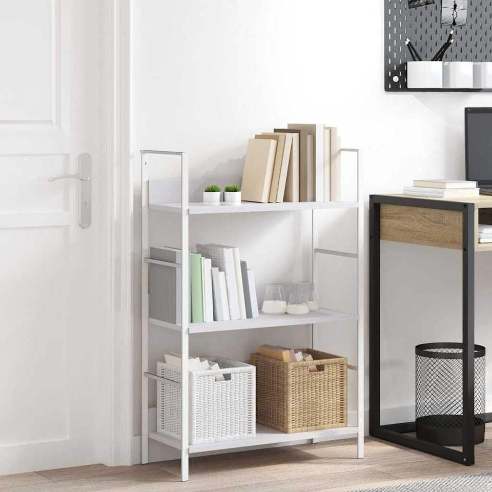 Medium White Engineered Wood and Steel Bookshelf Cabinet Bookcases Series