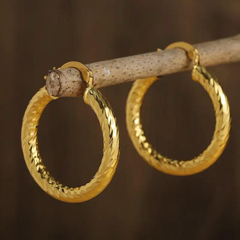 Medtian Gold Hoop Earrings 14K Classic Twist Design Unisex Everyday Wear Fine Jewelry