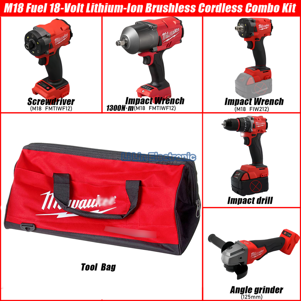 Include:drill, Screwdriver, angle Grinder, impact wrench, tool bag