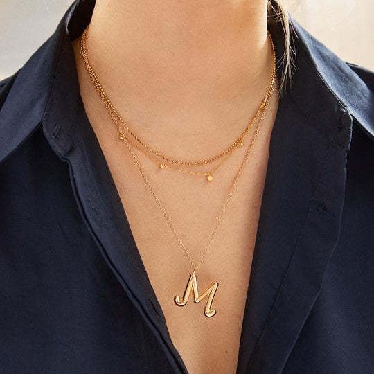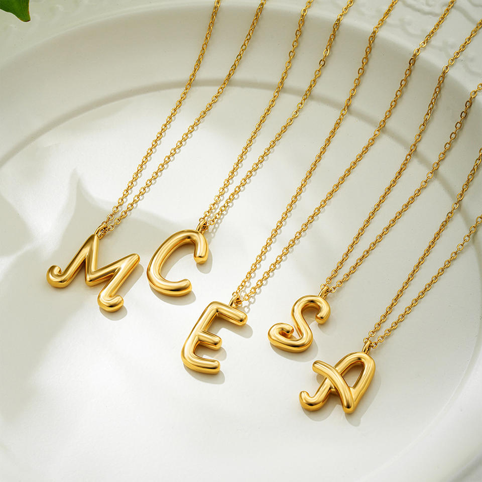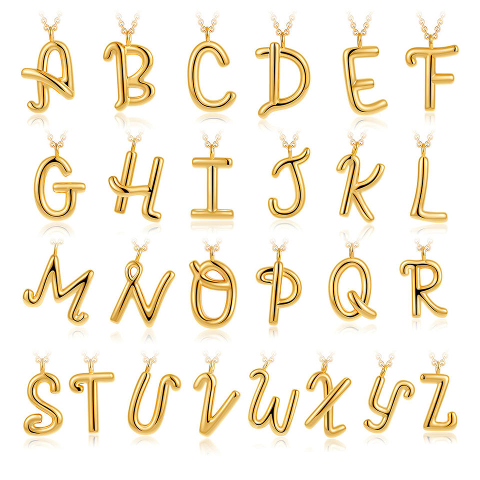 Meetyoo Wholesale 18K Gold Plated 26 English Alphabet Necklace Simple High Quality O-Chain Pendant Waterproof Trendy A-Z Jewelry