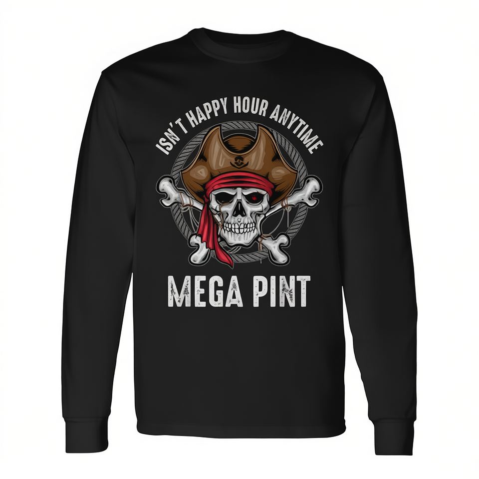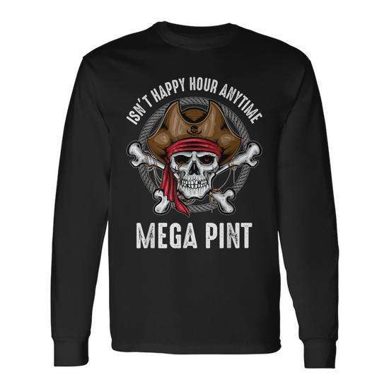T-Shirt a Maniche Lunghe Mega Pint con Design Teschio Pirata, Collo Tondo, Unisex per Adulti, Promozionale