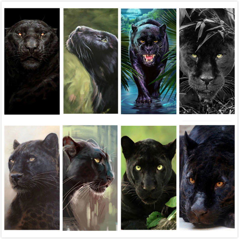 Meian Wholesale Black Panther Handmade DIY Diamond Painting Abstract Animal Design 30x40cm for Living Room Home Decor