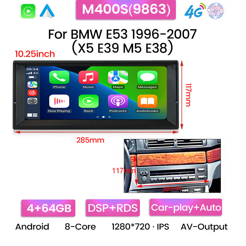 Lettore DVD per Auto Mekede MS 8-Core 8+128GB con Schermo IPS Display per Veicoli per BMW E53 1996-2007 X5 E39 M5 E38
