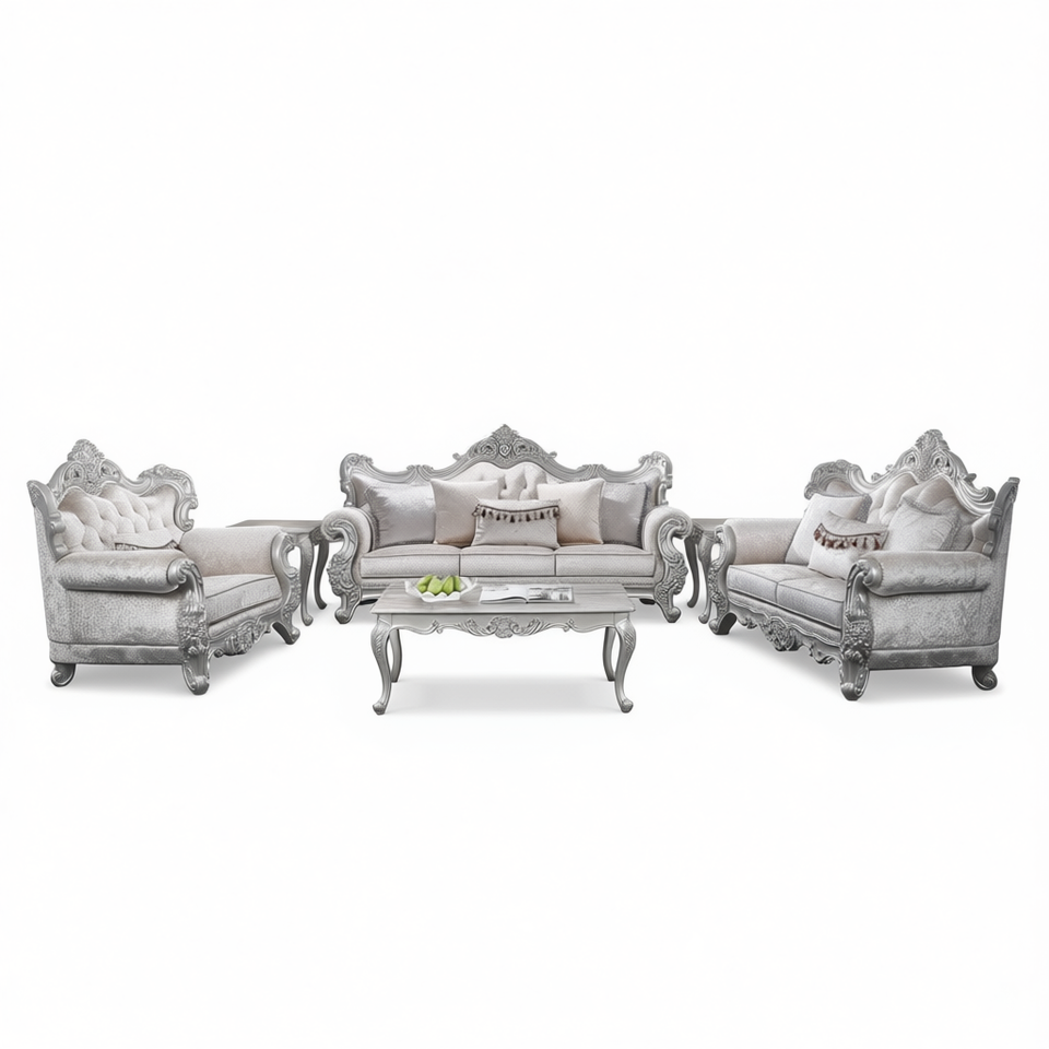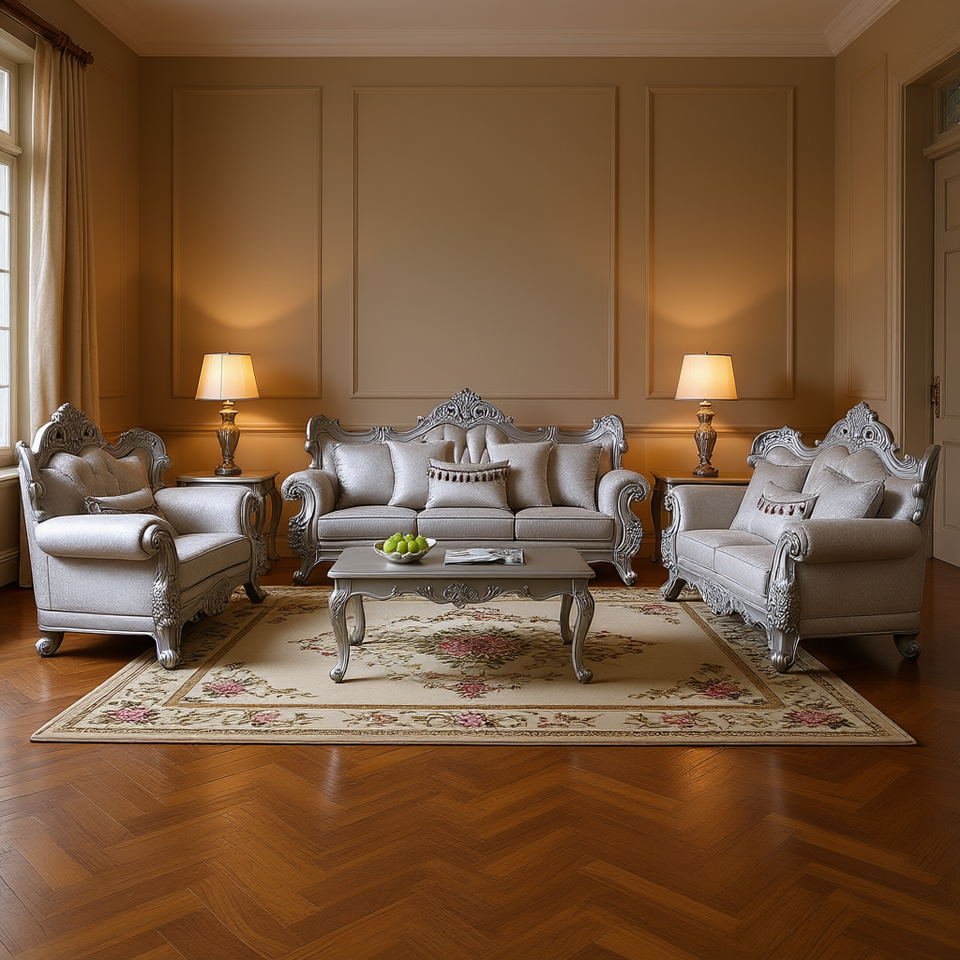 Silver Brush Finish: The silver brush finish adds a sophisticated and luxurious look to the furniture, enhancing the overall aesthetic of the living room.