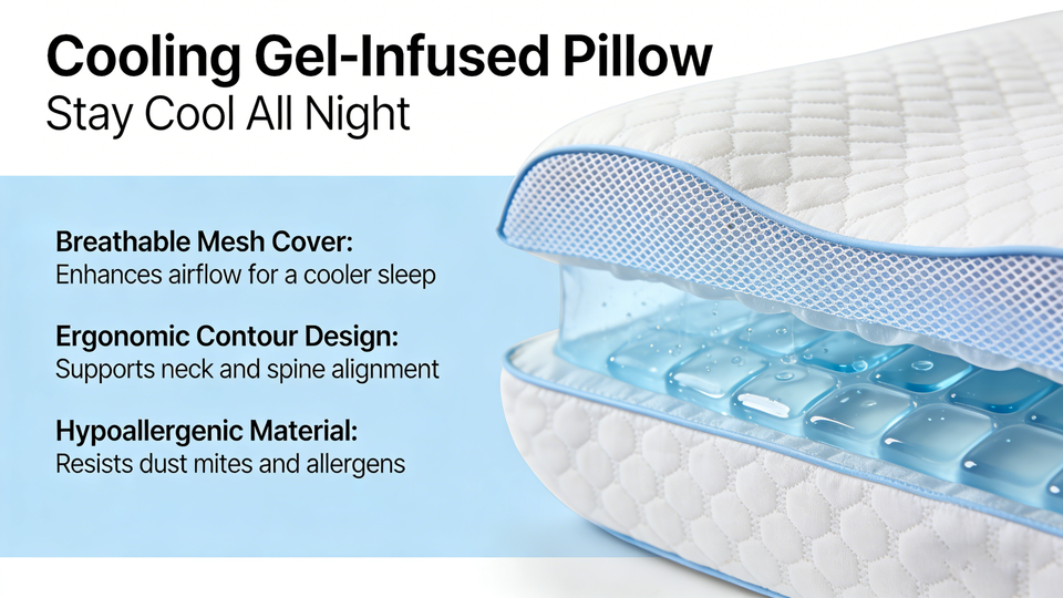Cuscino in Memory Foam per Alleviare l'Insonnia, Cuscino Cervicale Traspirante a Lento Ritorno, Supporto Ortopedico
