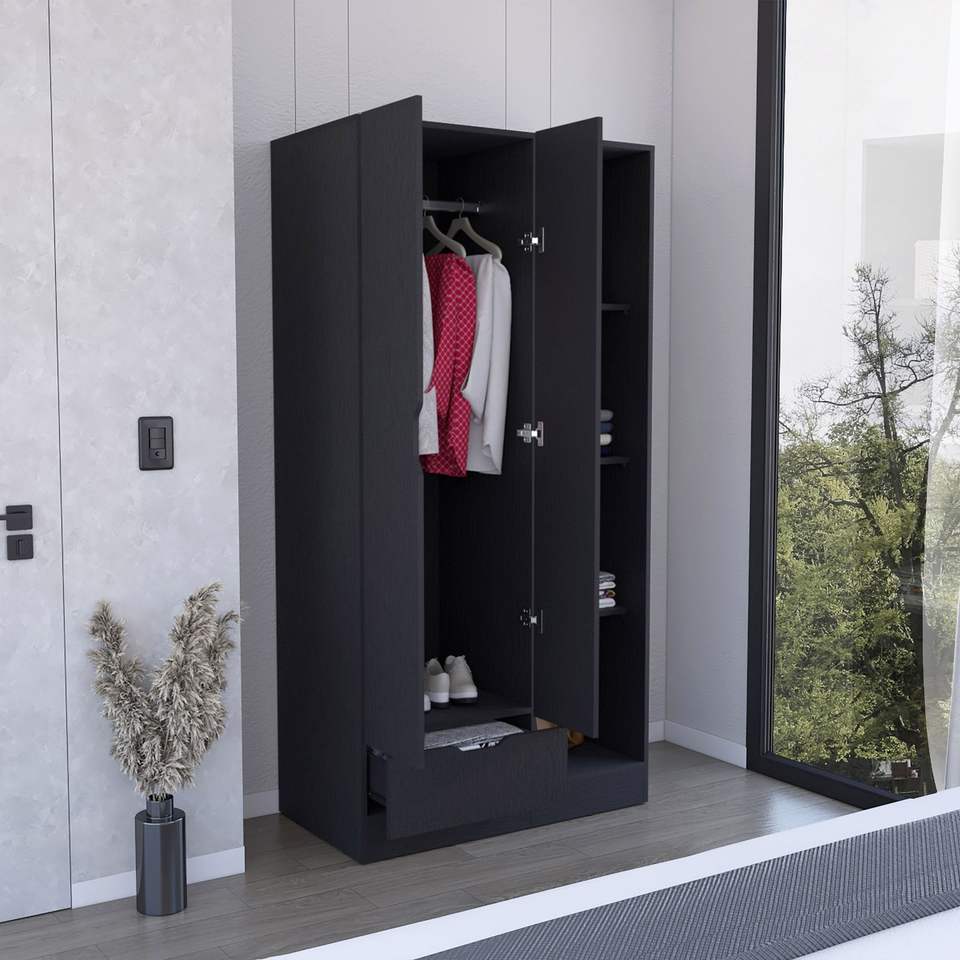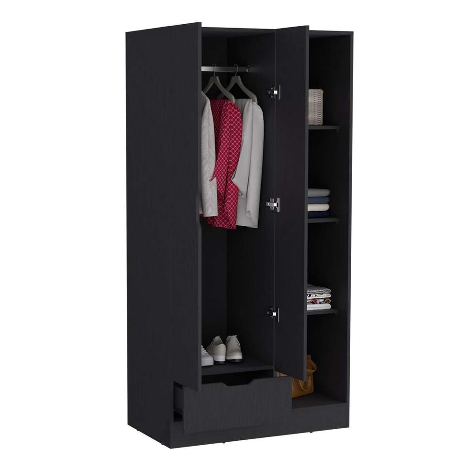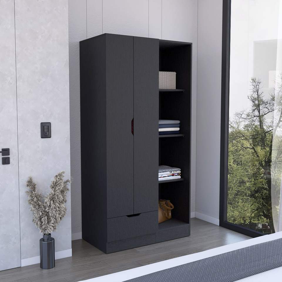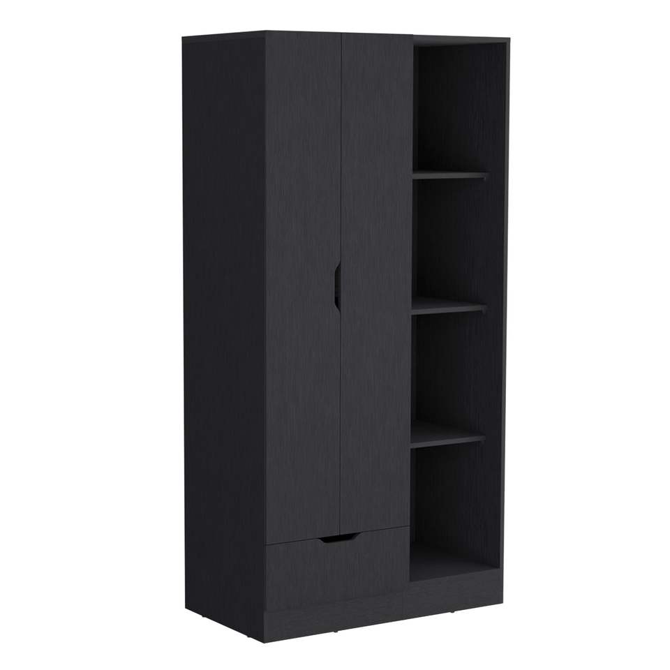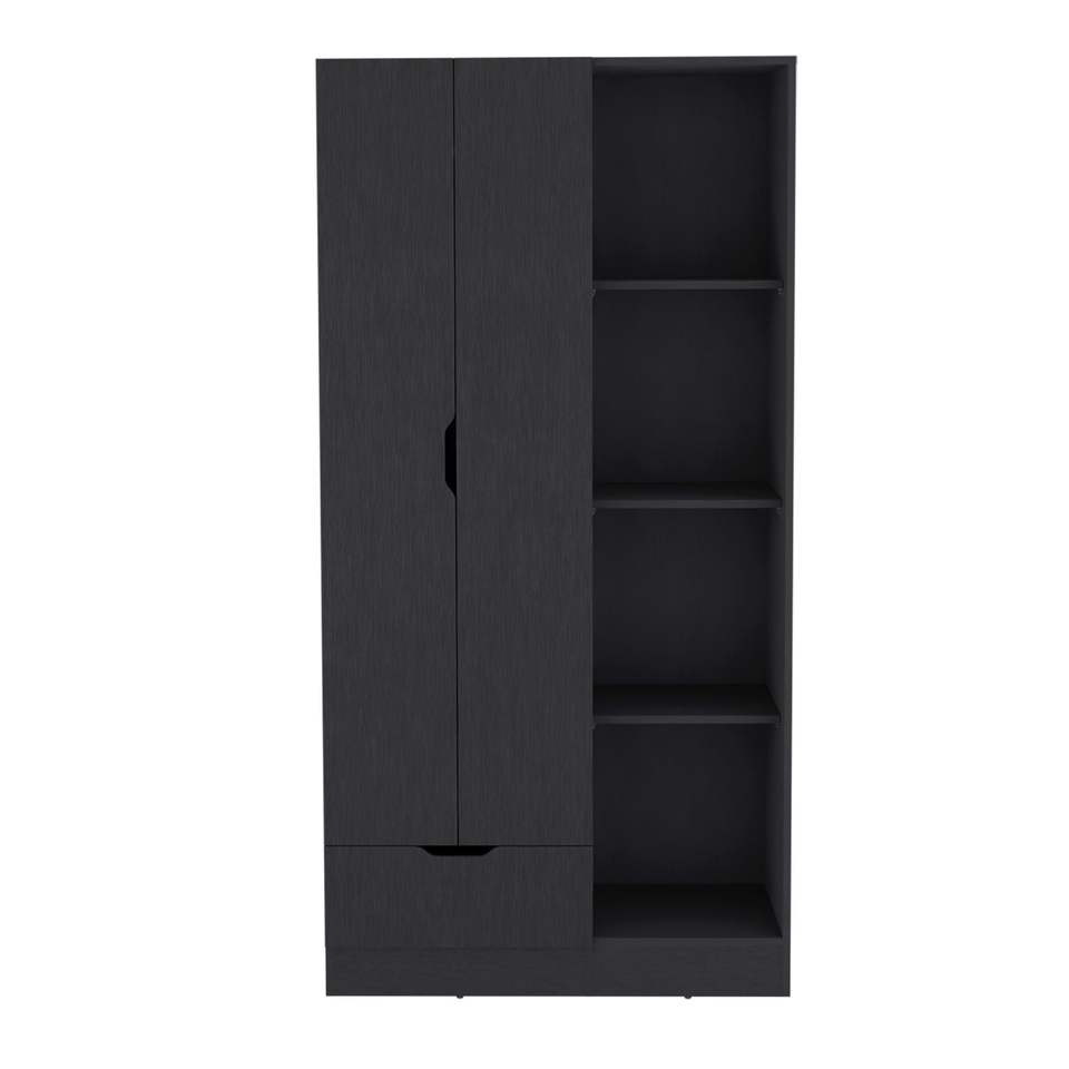 Memphis 4-Tier Storage Black Armoire with 1 Drawer Wardrobe Furniture