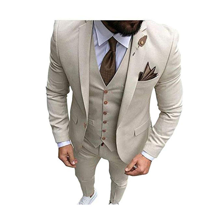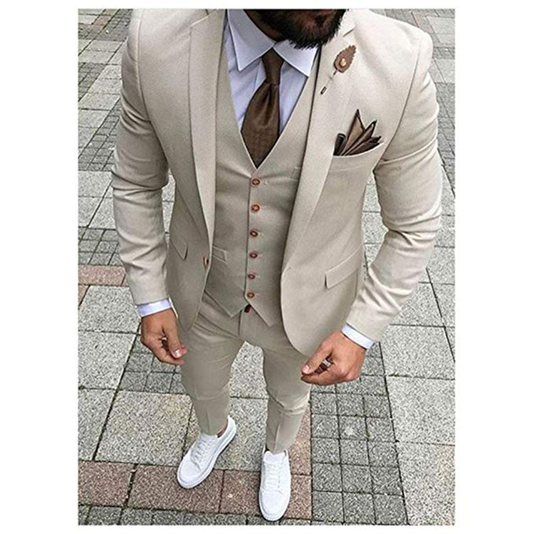 Men Beige Tan Ivory 3-Pieces Tailored Wedding Notch Lapel Tuxedo Groomsmen Men Slim Fit Blazer Pant Vest Suit
