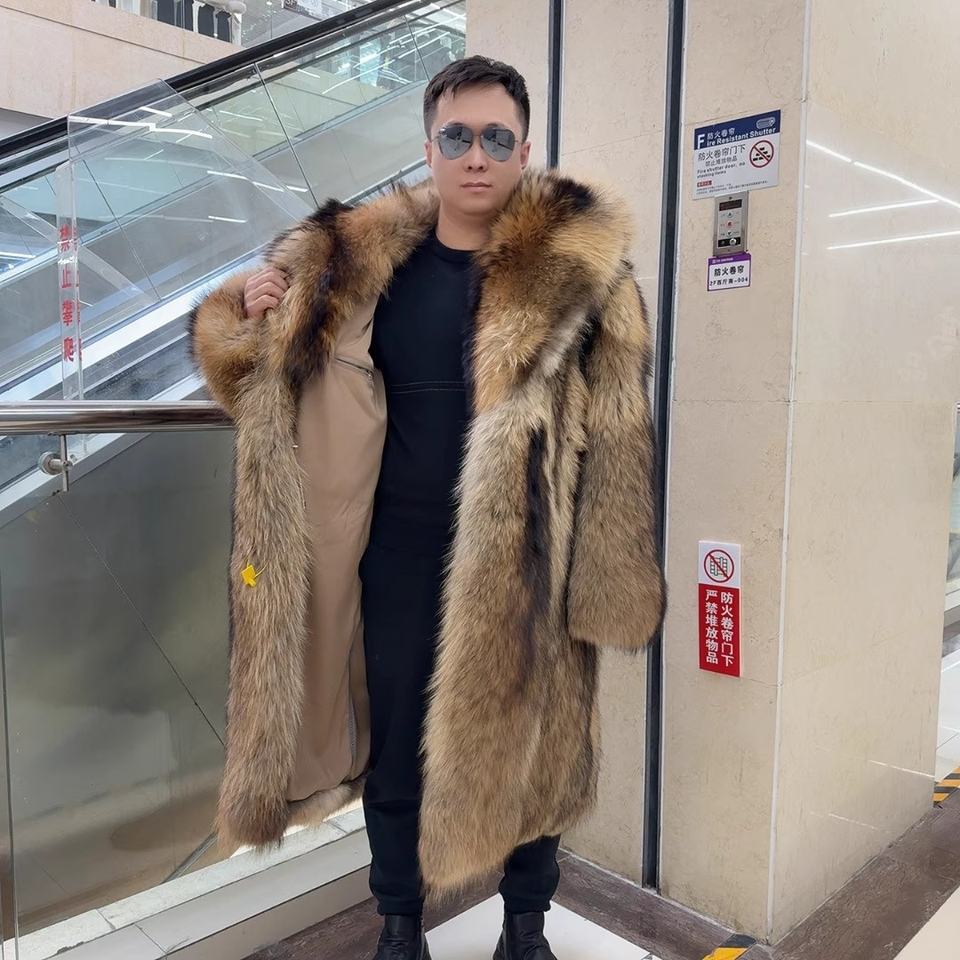 Cappotto Invernale da Uomo con Cappuccio in Vera Pelliccia di Procione, Taglie Grandi USA, Servizio OEM Personalizzato