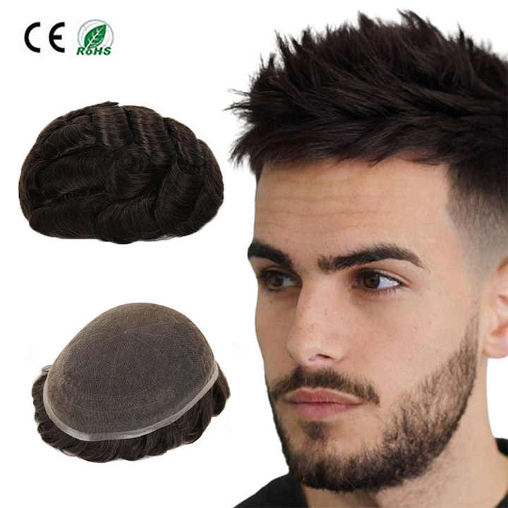 TOPUNIQUE Sistema di Sostituzione Capelli Umani Veri Indiani Remy di Alta Qualità con Base Completa, Parrucche Adesive, Toupet da Uomo di Alta Qualità TUL04