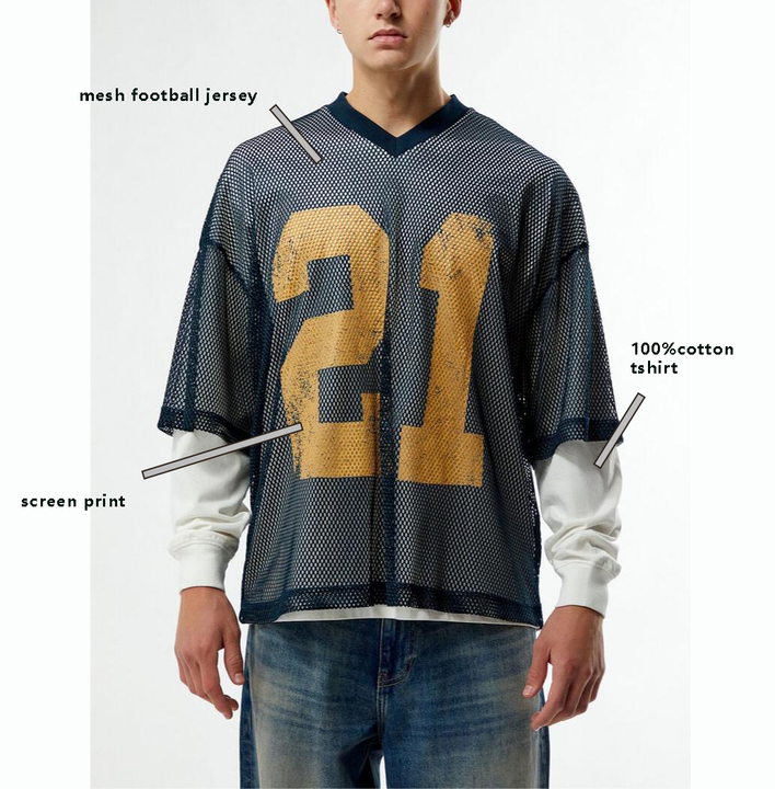 Men Mesh Football Jersey Oversized Streetwear Top Breathable Athletic T-shirt Custom Print OEM Supplier