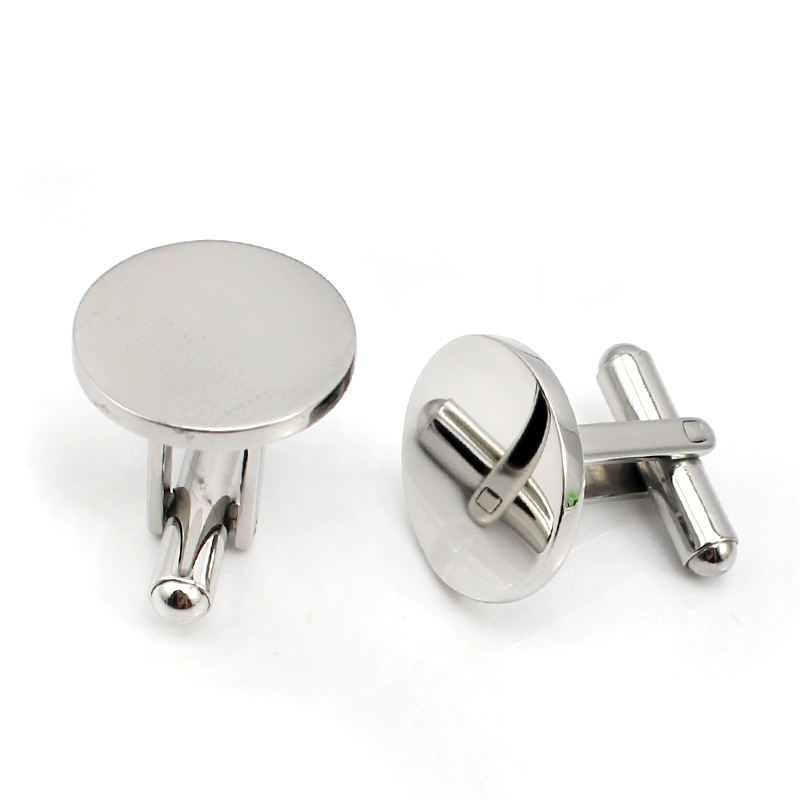 Gemelli da uomo in metallo con Logo personalizzato gemelli rotondi in acciaio inossidabile con gemelli in argento personalizzato gemelli a forma di bottone