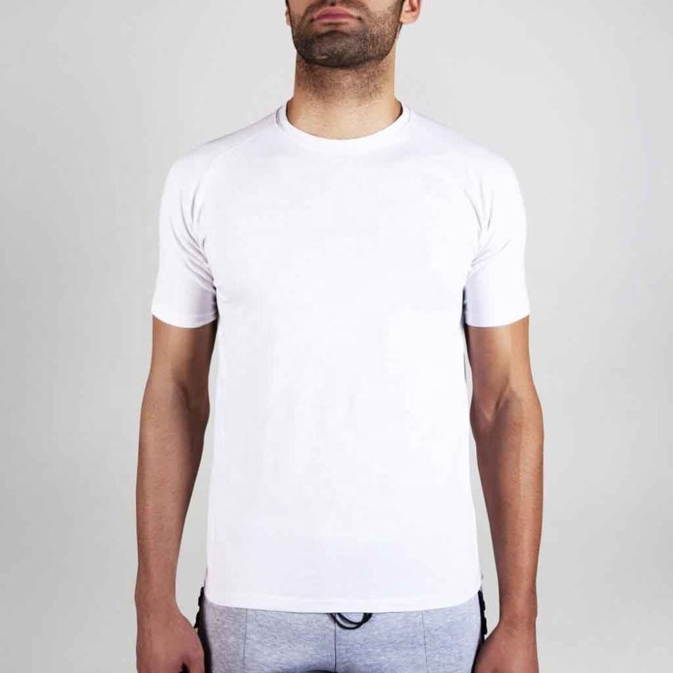 T-shirt sportiva da uomo tinta unita con opzione di stampa digitale, abbigliamento sportivo personalizzabile per tutti, vestibilità comoda per uso quotidiano o palestra