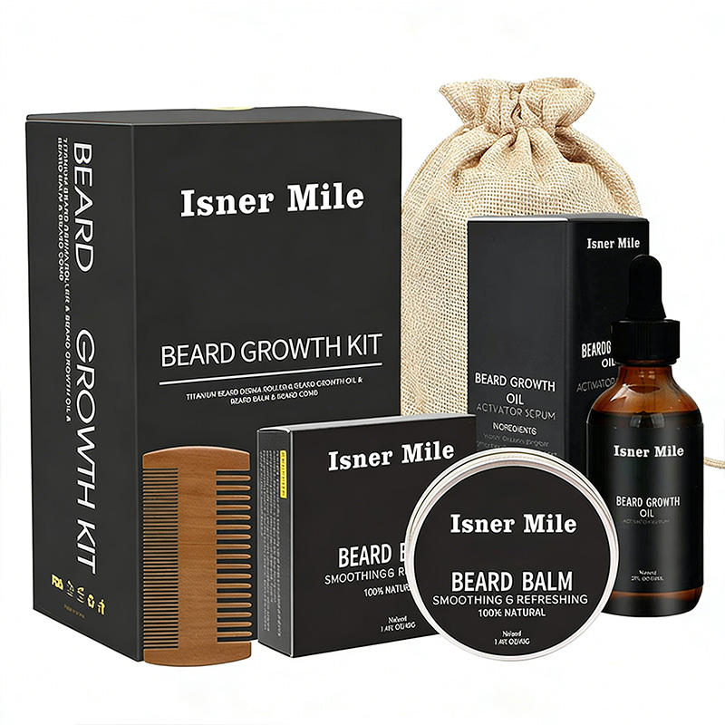 Men Private Label Beard Growth Roller Set 100% Natural Beard Oil Balm Products Beard Grooming Kit