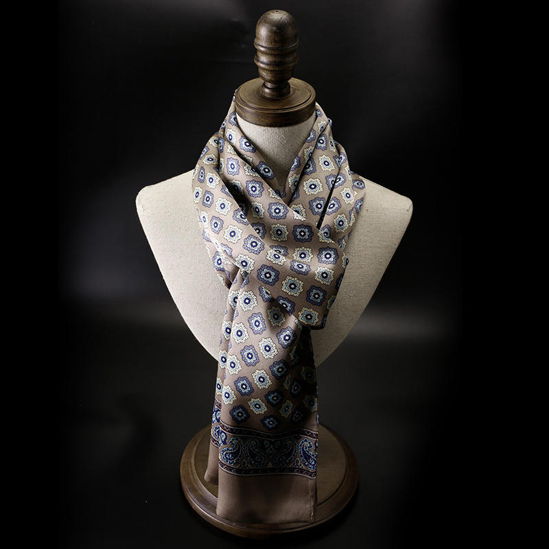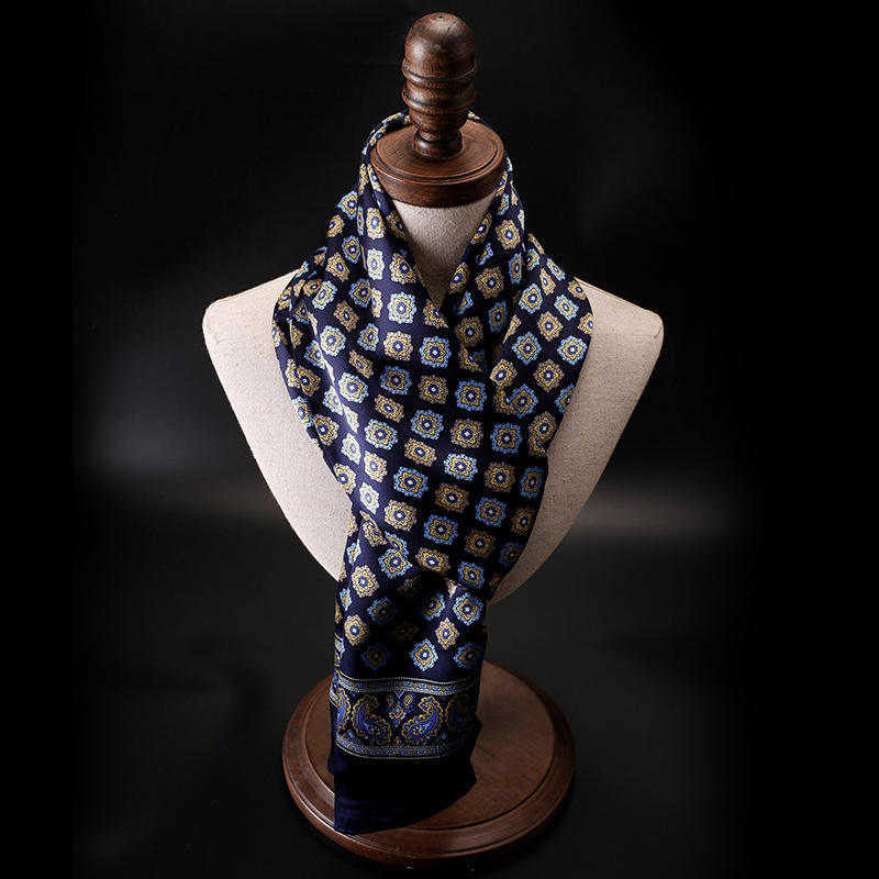 Men Shawl Neck Wear Men Designer Silk Scarves Satin Pashmina Double Layers 100% Pure Silk Scarf Wholesale Classic Blue