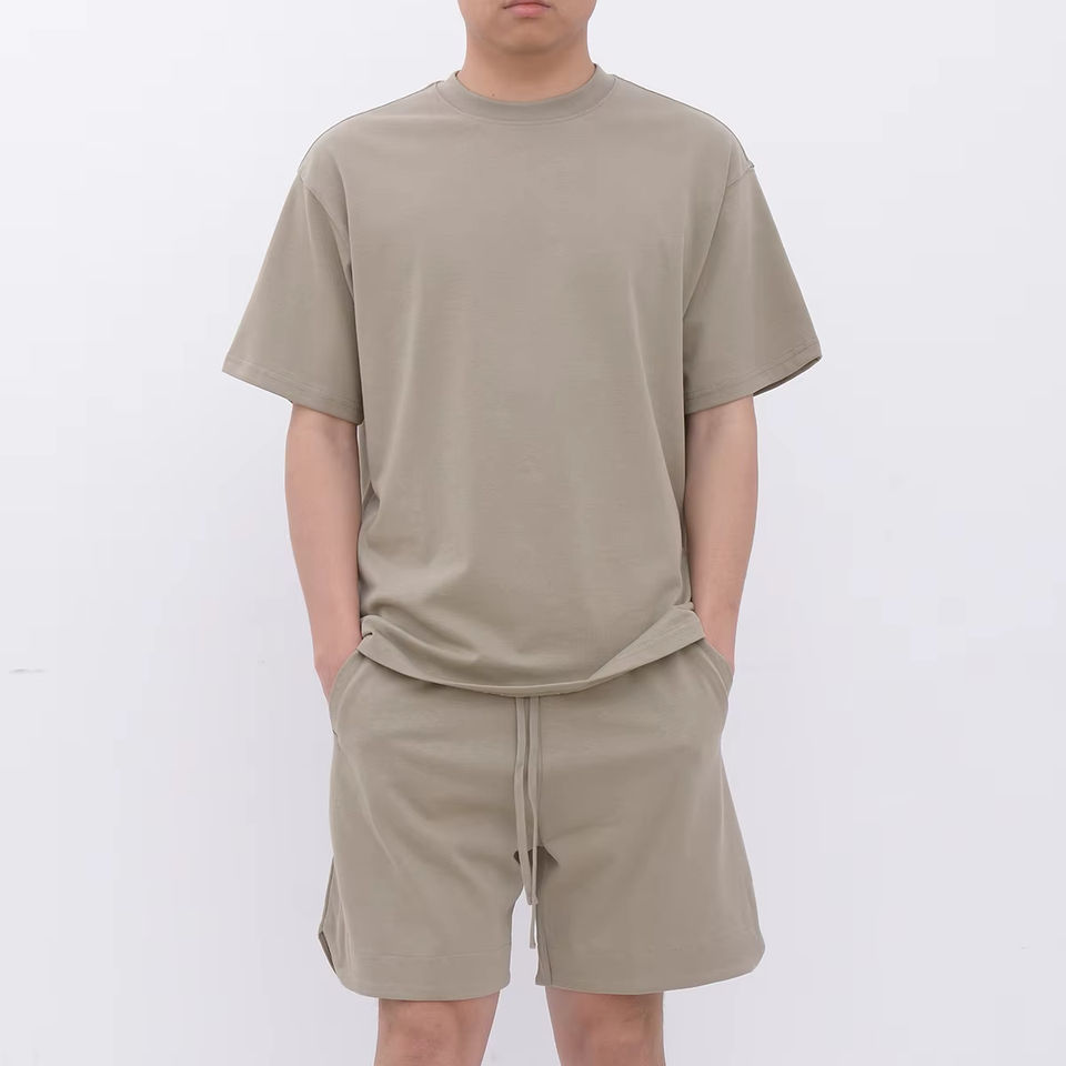 Pantaloncini da uomo in tinta unita da uomo a maniche corte t-shirt completo da uomo sottile estate due pezzi Set di abbigliamento