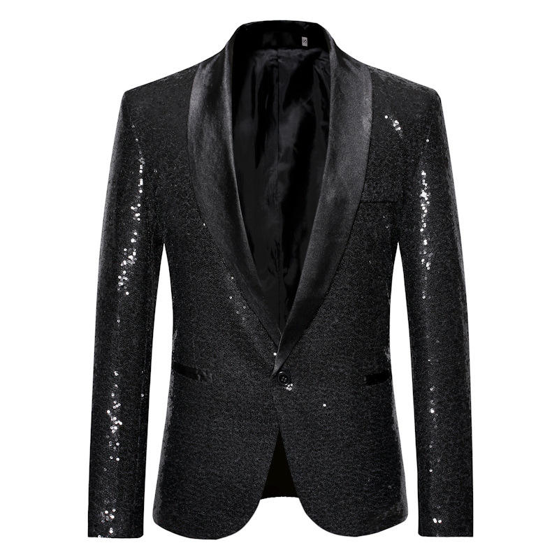 Uomo primavera autunno un bottone bello paillettes Glitter vestito giacca moda uomo bavero scollo a v festa di ballo gioventù cappotto top vestito