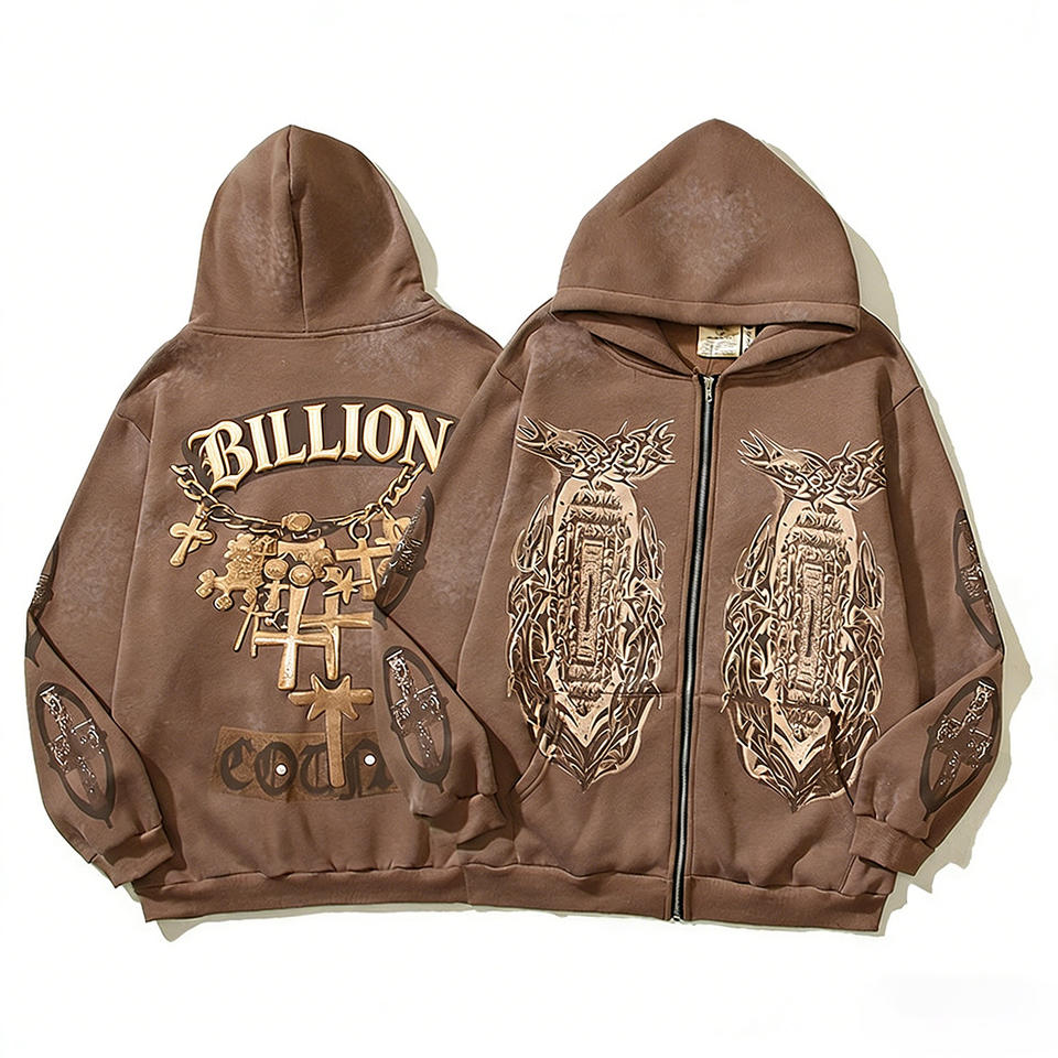 Felpa con Cappuccio Gotica da Uomo 100% Cotone con Zip Oversize Stile Streetwear con Stampa Teschio Design Foderato Stile Punk Rock per l'Autunno