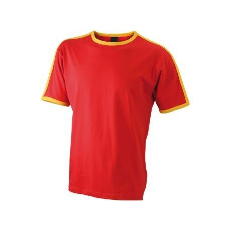 Men's 100% Organic Cotton T-Shirt Flag-T Design with Contrast Stripes Slim Fit 300 GSM Silk Screen Printing