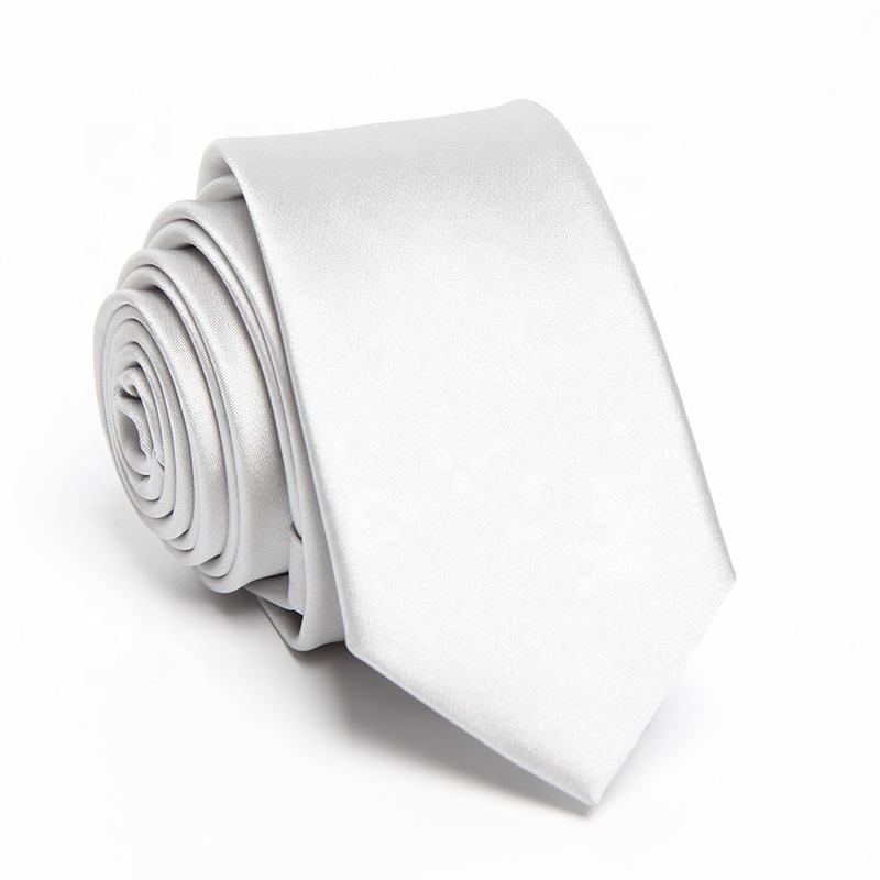 Cravatta da Uomo Personalizzata 5cm Grigio Chiaro per Matrimonio Alta Qualità Raso Poliestere Tinta Unita Sottile con Etichetta Privata