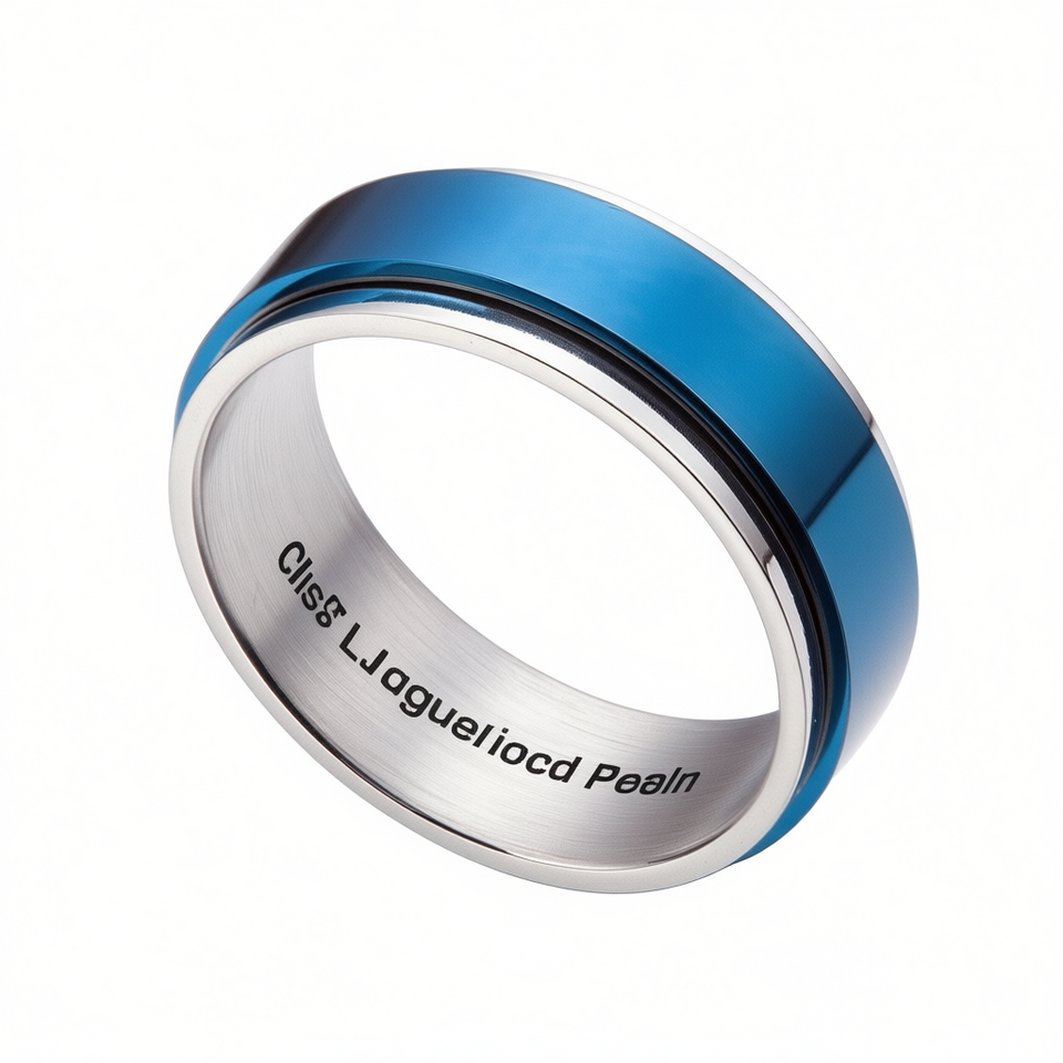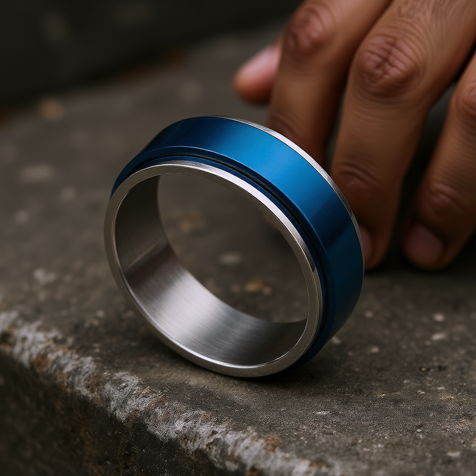 Anello da uomo in acciaio inossidabile blu da 8 mm, placcato oro, stile vintage hip hop, taglia 10