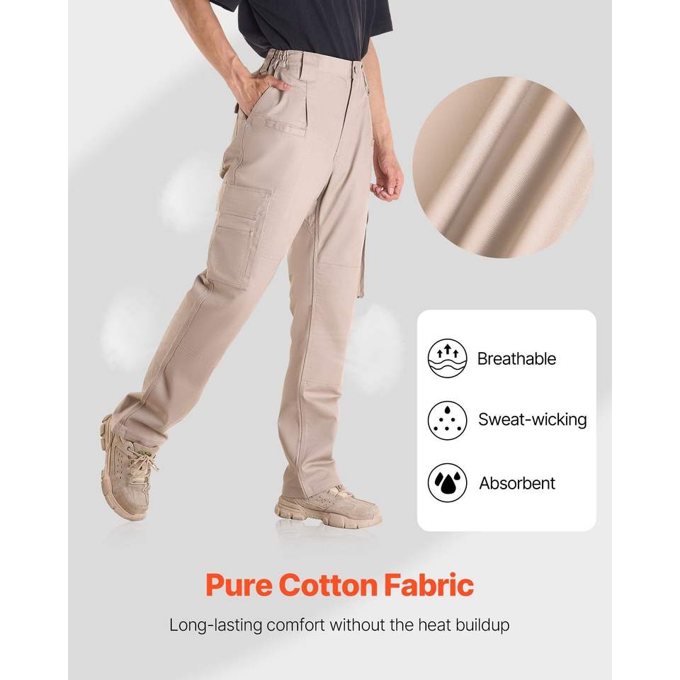 Pantaloni da Lavoro Uomo 9 oz 100% Cotone Ignifugo, Cargo Multitasche, Vita Elastica, Rinforzati Antistrappo con STI
