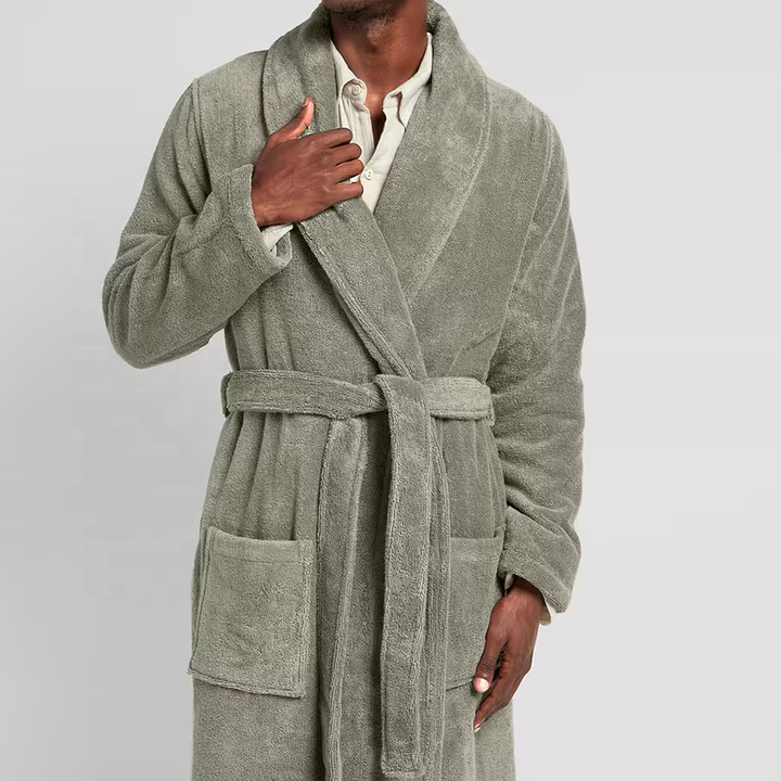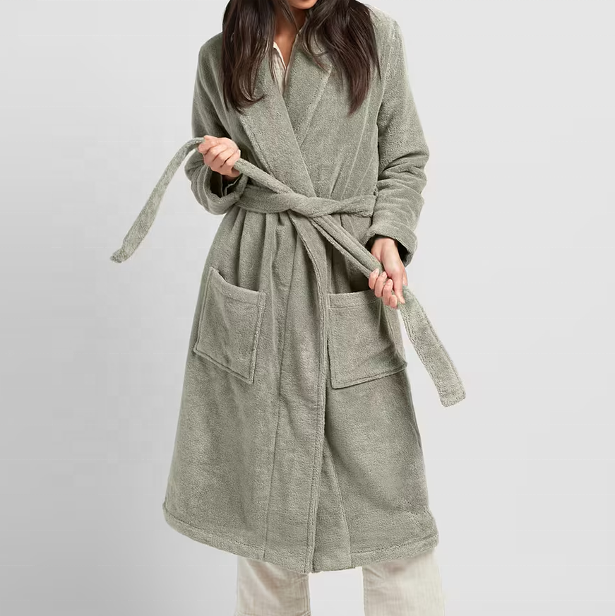 Accappatoio da uomo in peluche assorbente colorato in cotone lungo in fiocco da donna