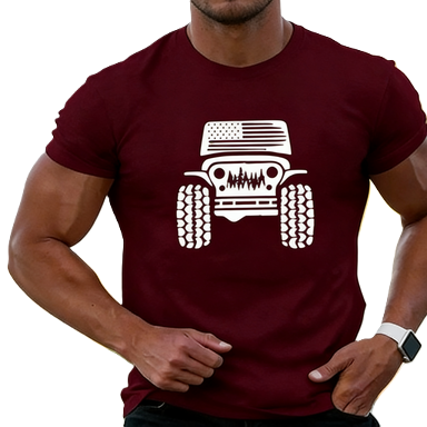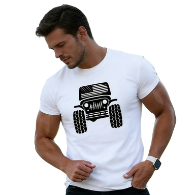 T-shirt da uomo con grafica bandiera americana per fuoristrada, design patriottico con griglia 4x4, top per avventure all'aperto, t-shirt oversize in cotone a maniche corte, streetwear casual