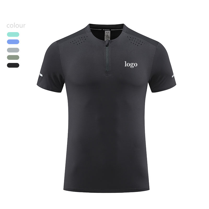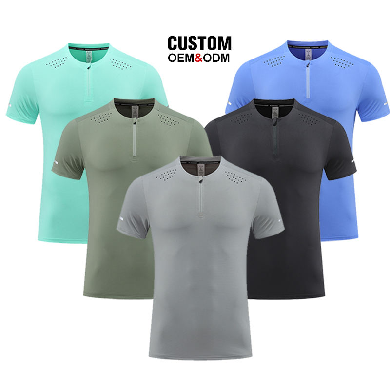 Maglia sportiva da uomo con cerniera girocollo manica corta girocollo Casual lavorato a maglia con stampa digitale