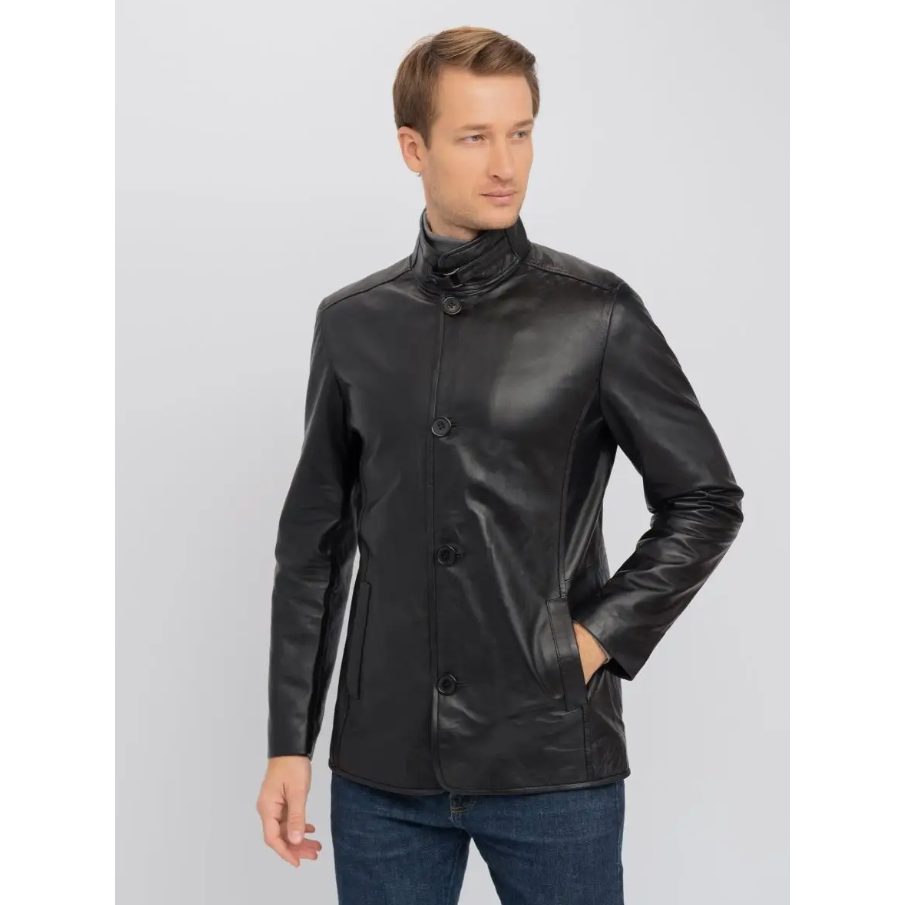 Men's Black 100% Genuine Lambskin Leather Jacket Stand Collar Full Button Closure 2 Front Pockets Custom Sizes S-3XL XS