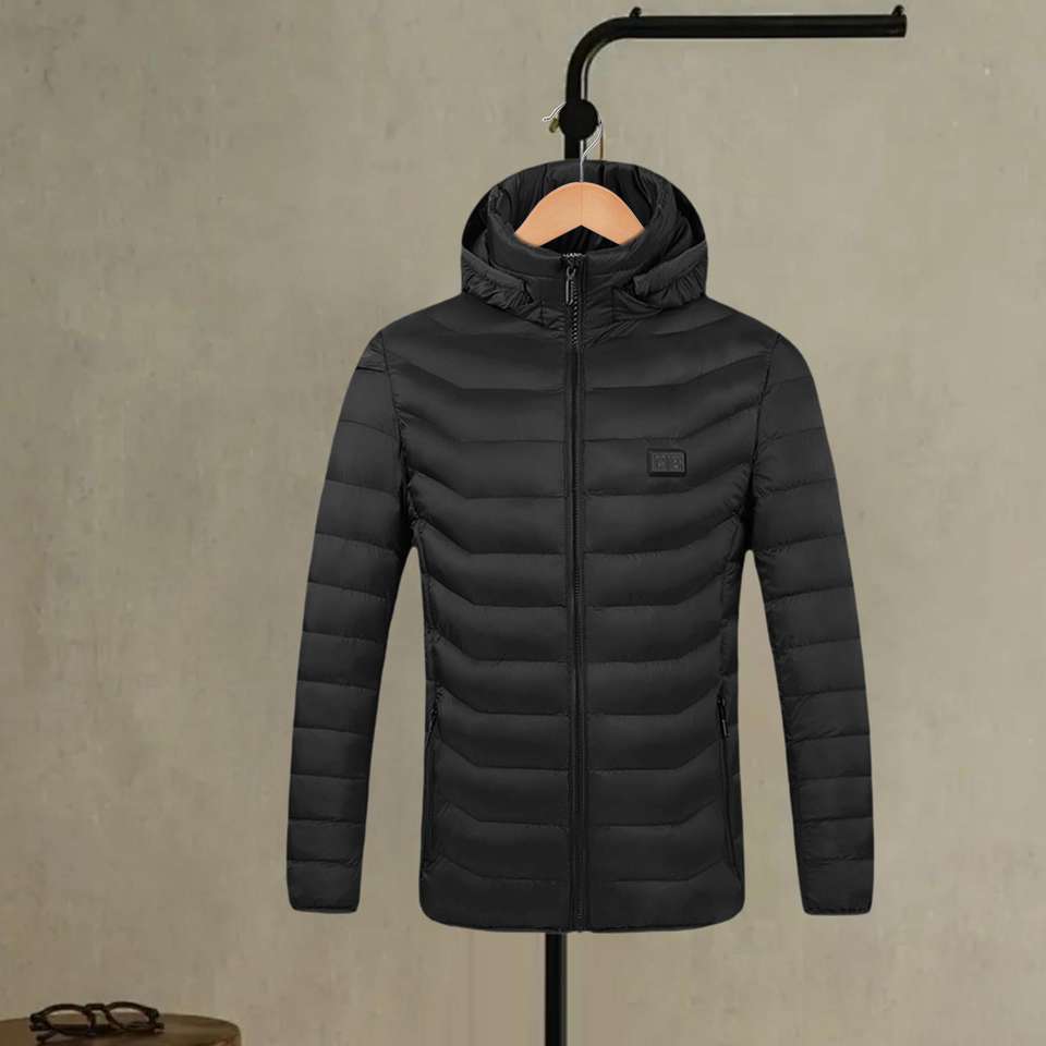 Men's Black 2XL Casual Heated Jacket for Outdoor Sports Fishing & Hiking Soft Coat Windproof Fitness Features Polyester Filling